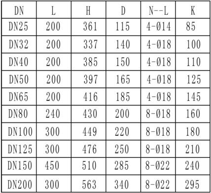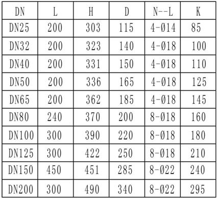 流量計采用法蘭連接方式,法蘭尺寸執行化工部GB/T 20592-2009標準,流量計外形見組圖4,尺寸列于表2中(此表為PN1.6MPa時的法蘭尺寸)。